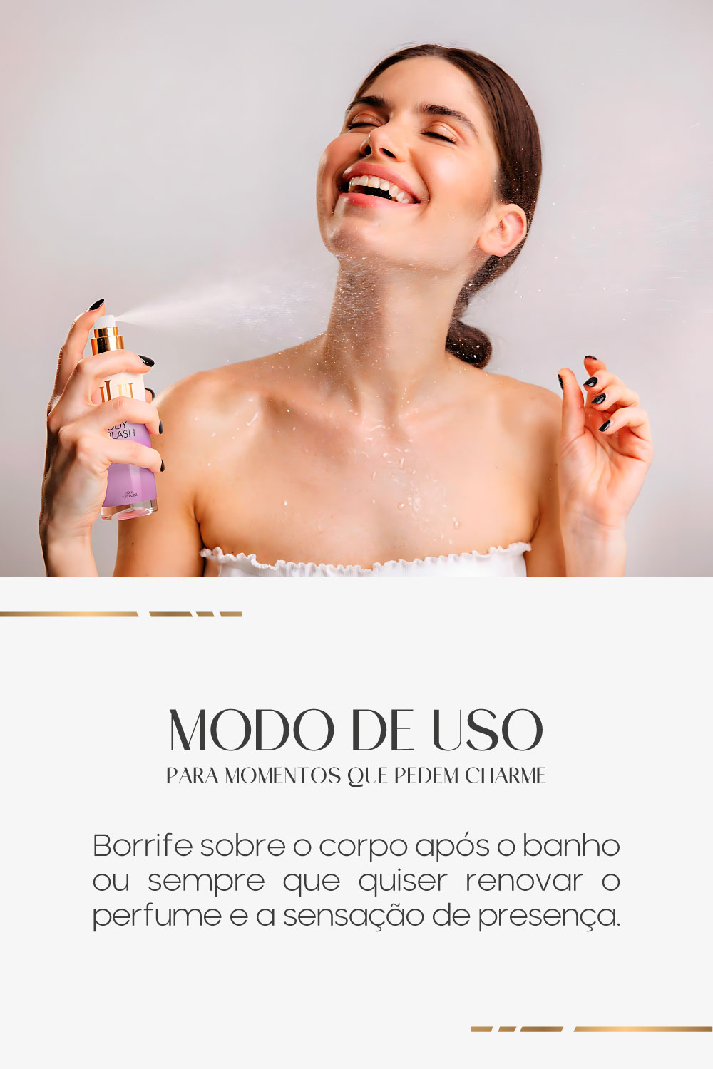 A embalagem elegante e prática torna a aplicação fácil e uniforme, transformando o simples ato de se perfumar em um ritual de charme e autocuidado.